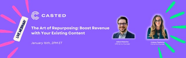 If you want to get more ROI from your content, Lindsey (CEO) and Adam (Co-founder) at Casted are hosting a live virtual session calledThe Art of Repurposing: Boost Revenue with Your Existing Content. Join and you’ll discover: