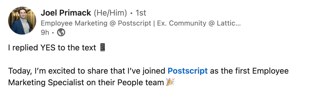 Let’s start the year by showing Joel Primack some love for landing a new gig as an Employee Marketing Specialist!
