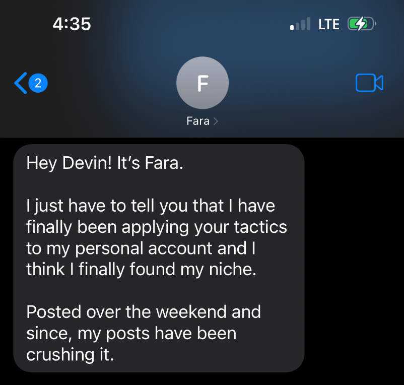 Fara hit me up this week with a sweet update about her LinkedIn game: