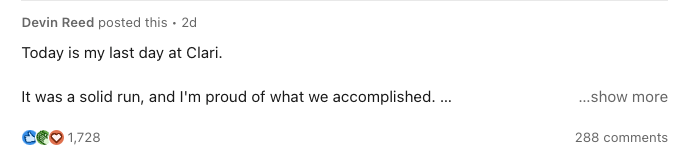 On Friday I quit my full time job at Clari.