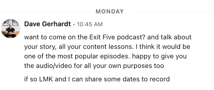 Two hours later I got this DM from Dave Gerhardt, one of the most well-known and respected B2B marketing leaders (and someone I’ve watched and learned from for years):